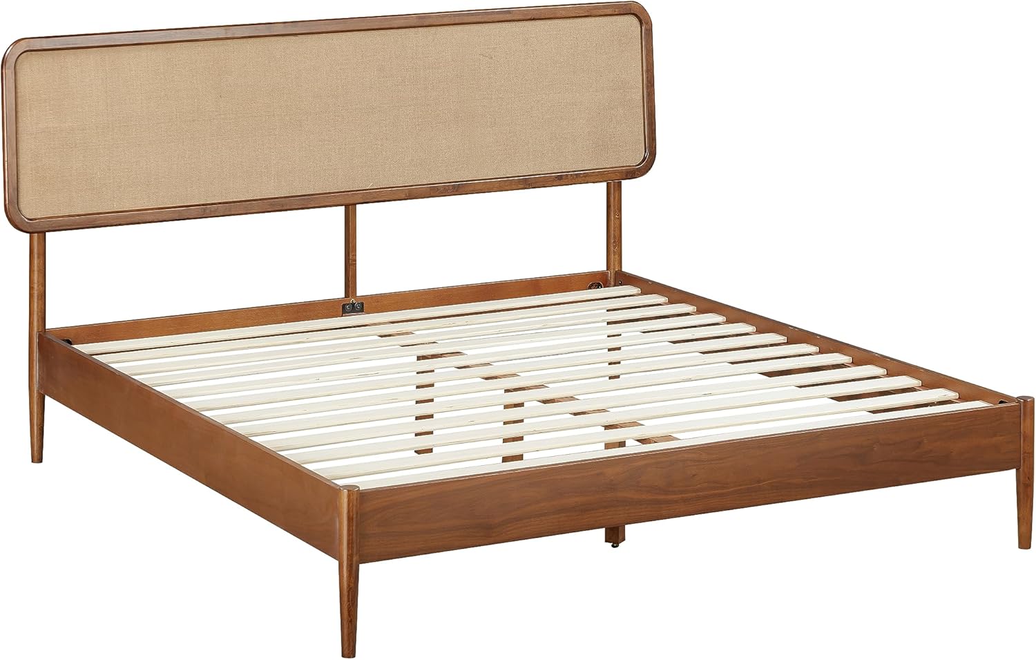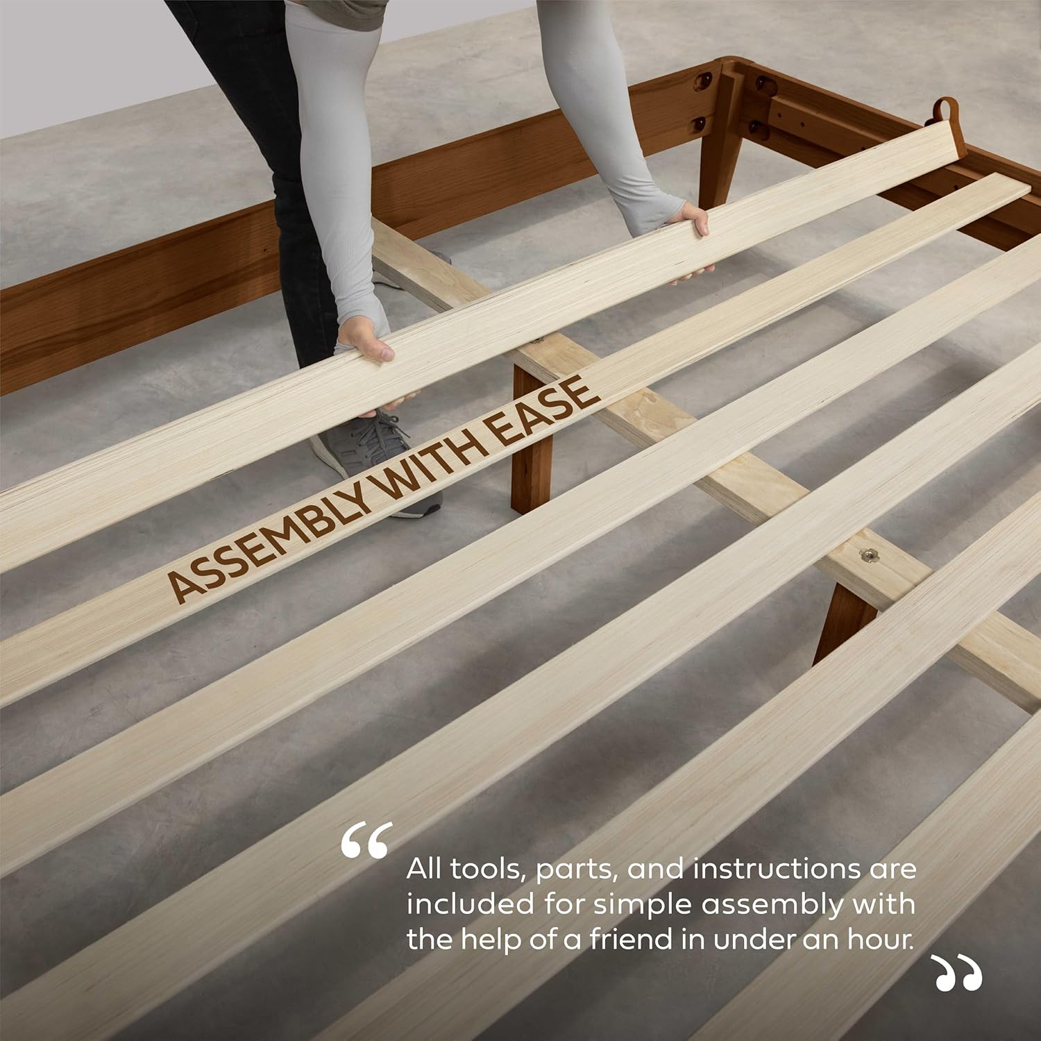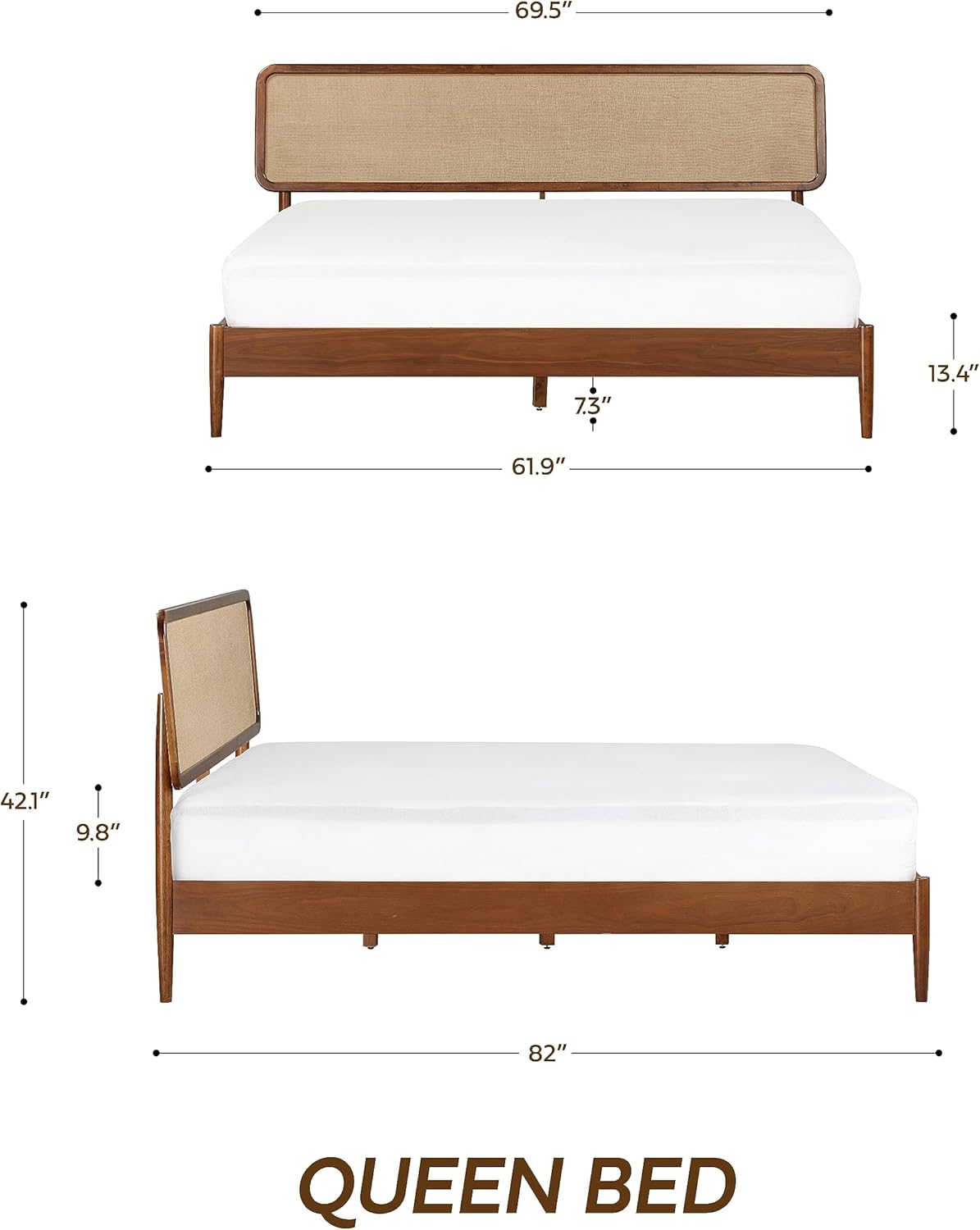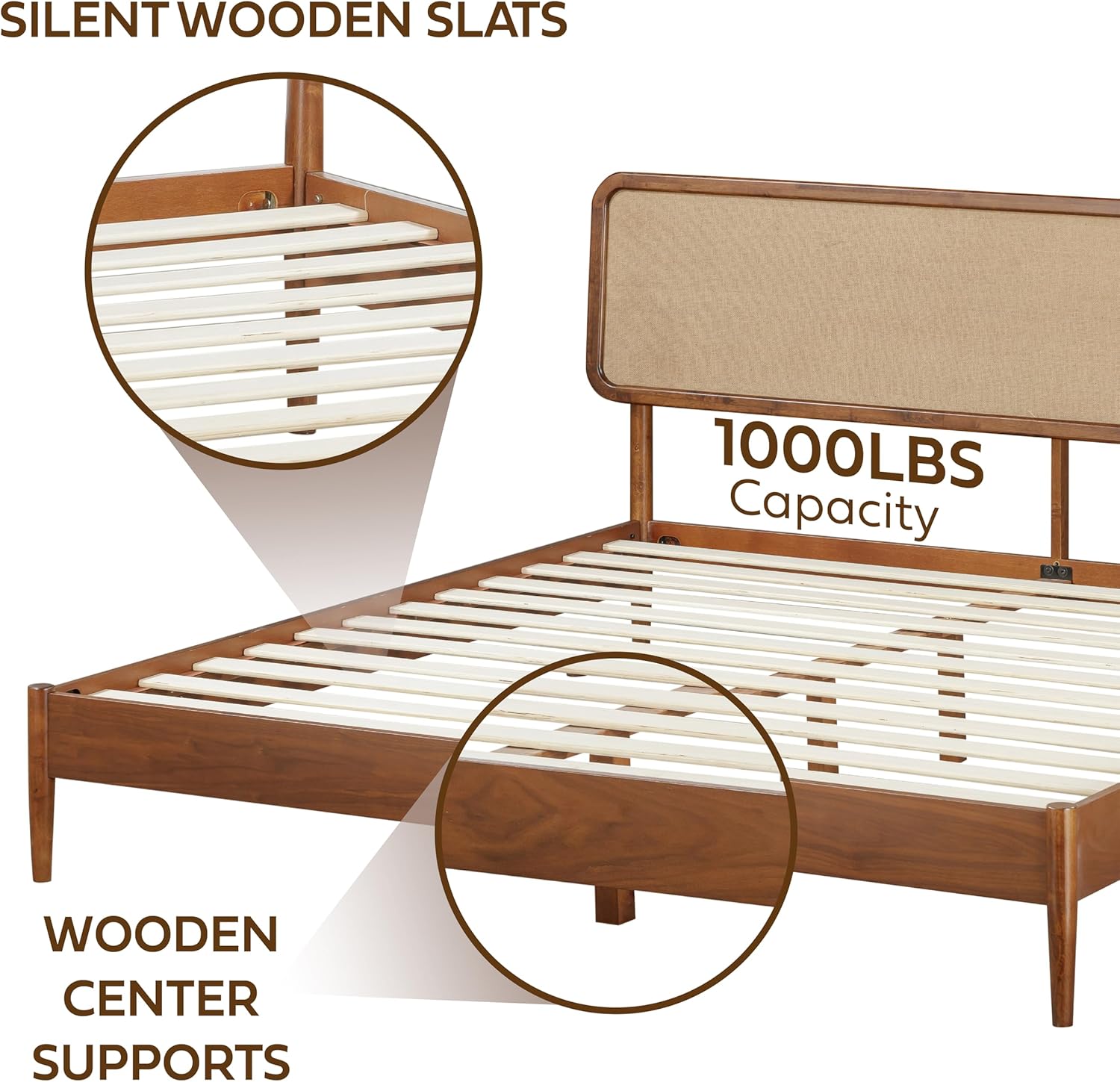 NTC Lupin Wooden Bed Frame with Headboard, Crafted from Walnut, Rubber Wood with Silent Slats and Wood Central Supports, 1000 Lb Capacity, Effortless Assembly, Queen – Dark Walnut