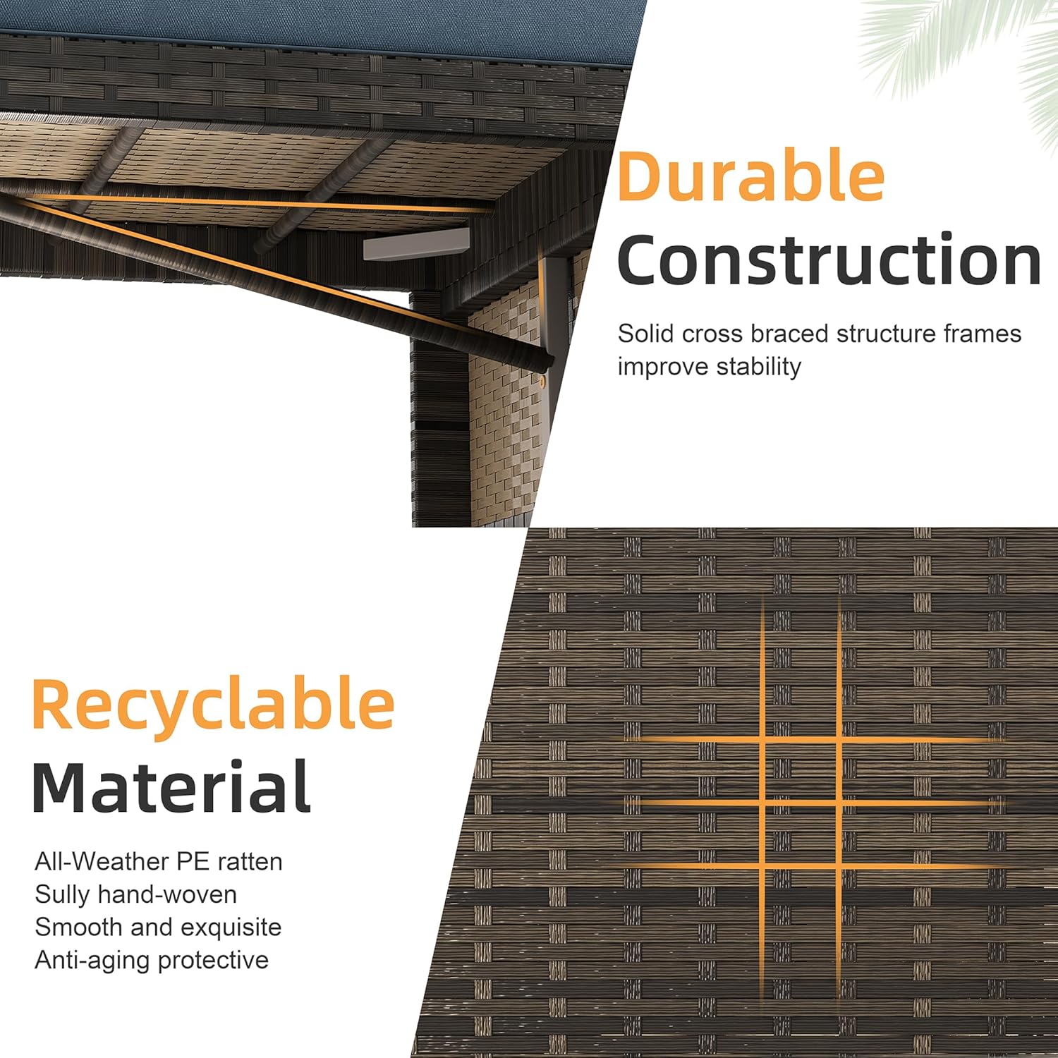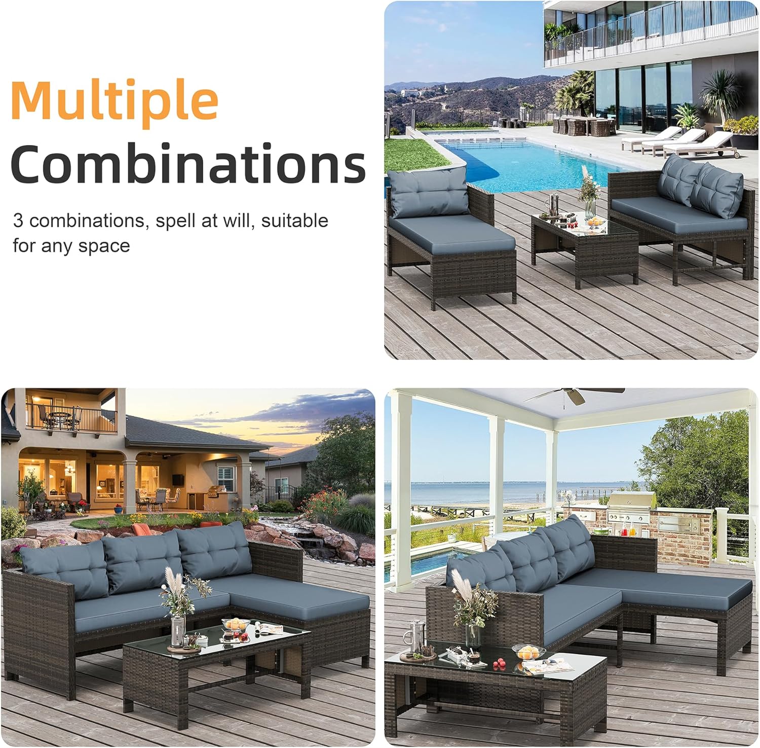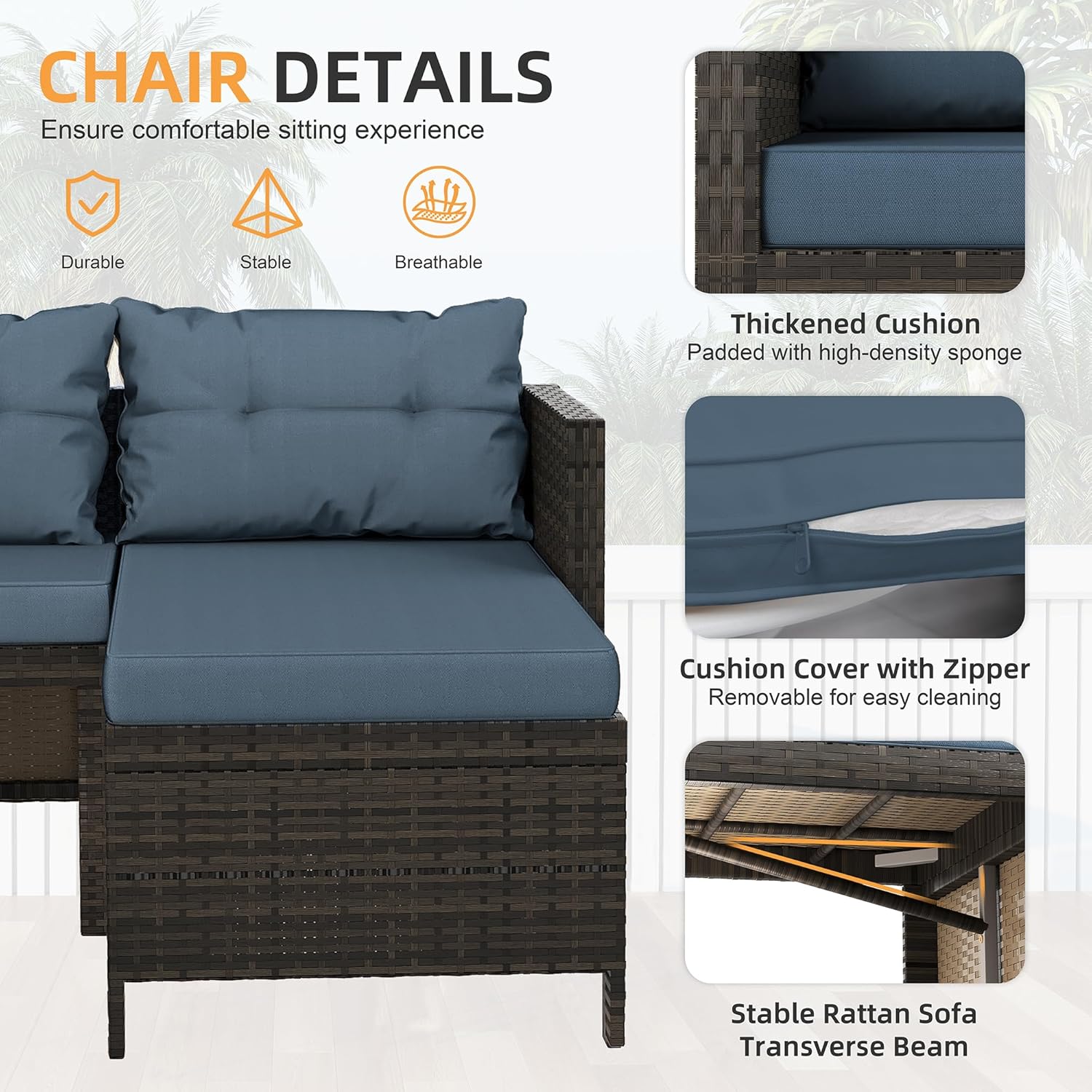 Shintenchi Outdoor Patio Furniture Sets, Wicker Patio sectional Sets 3-Piece, All Weather Wicker Rattan Patio Seating Sofas with Glass Coffee Table and Cushion (Blue)