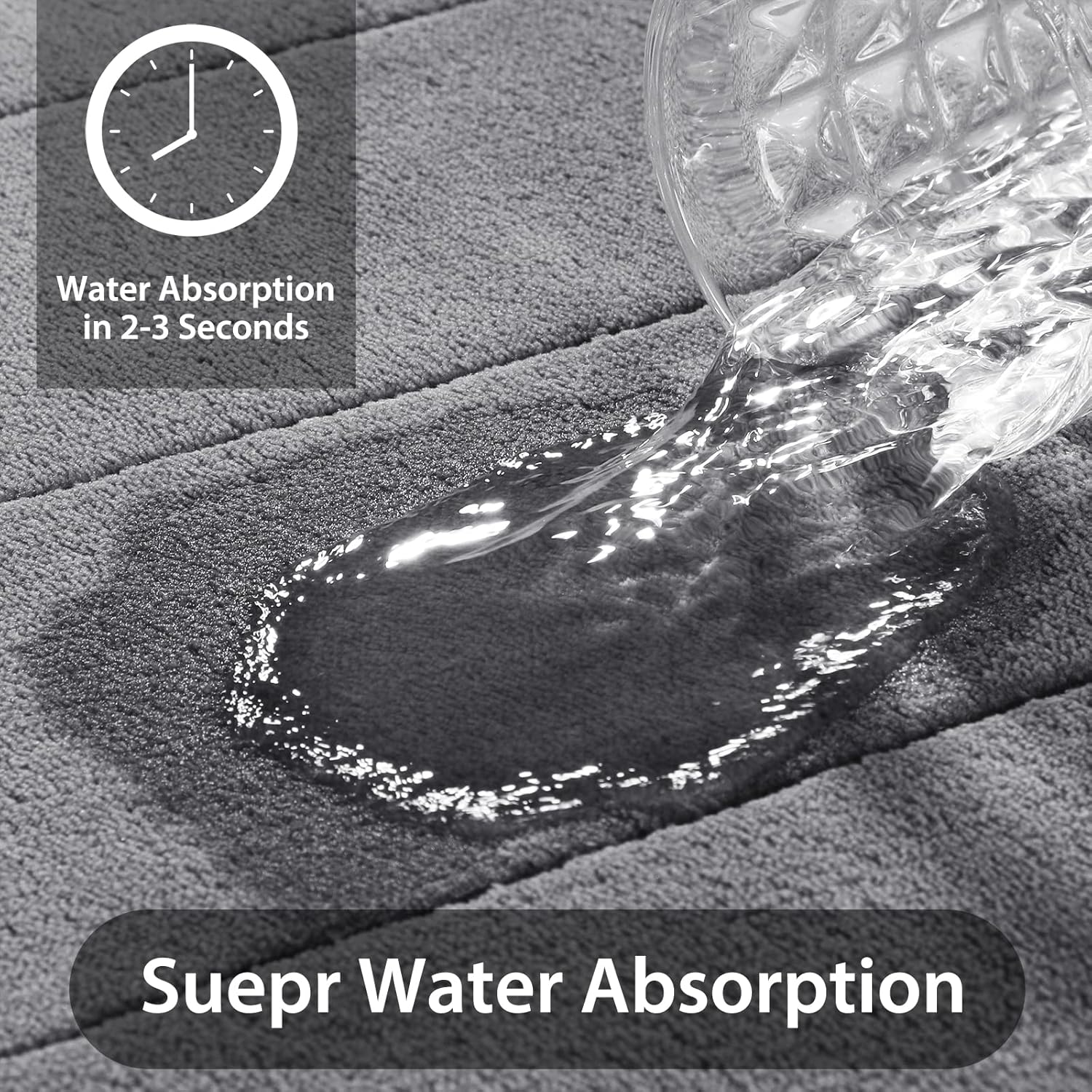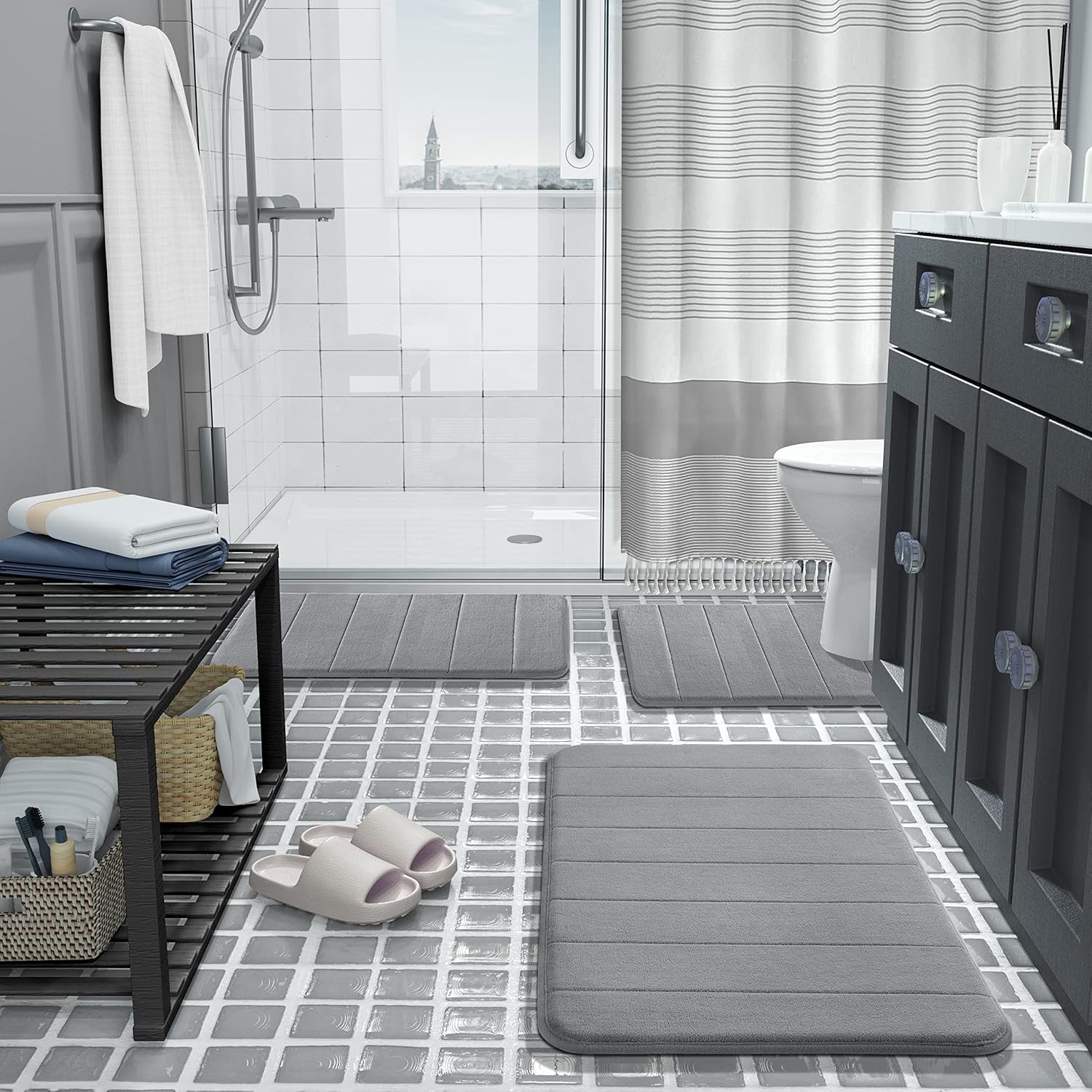 Yimobra Memory Foam Bath Mat Set 3 Pieces- Super Soft Absorbent Quick Dry Bathroom Rug Sets, Machine Washable Non Slip Floor Carpet for Tub Shower, Vanity & Toilet Base, Gray